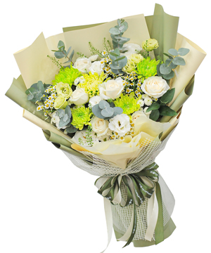 Hãy thể hiện tình cảm của bạn bằng cử chỉ nhỏ thôi cũng là quá đủ! Một bó hoa màu xanh nhẹ nhàng kết hợp với các hoa tone trắng